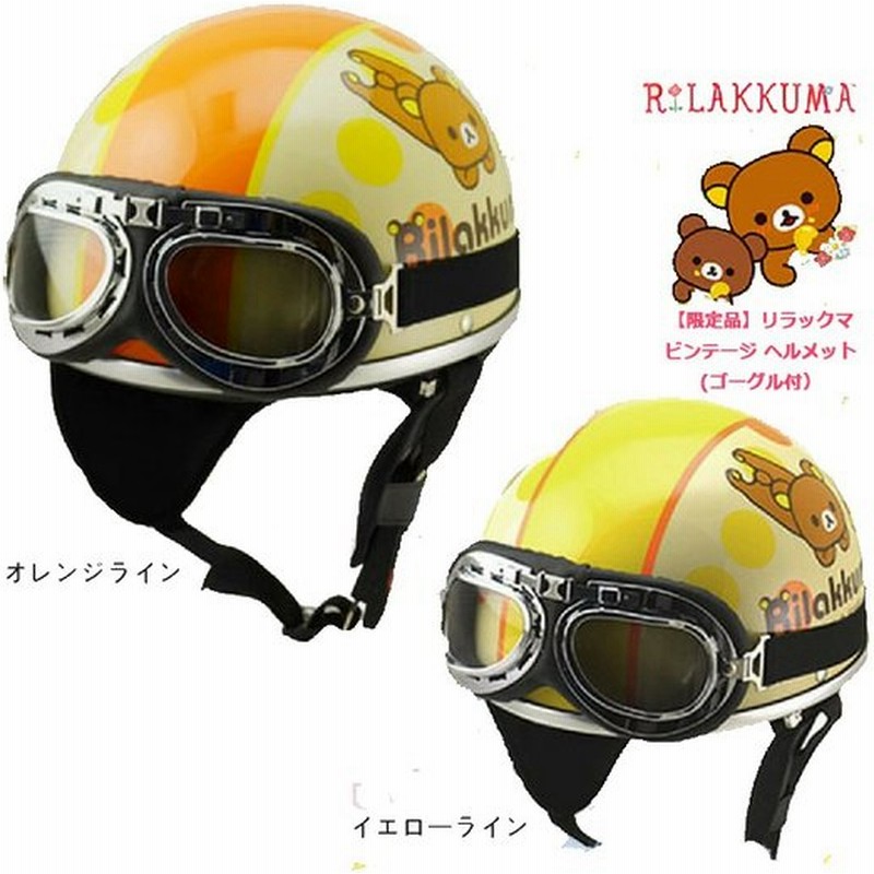 リラックマ 限定品 ヘルメット ゴーグル付き バイク用 Sg Psc認定 125cc以下 Rilakkuma Vintage Helmet オレンジライン イエローライン 通販 Lineポイント最大0 5 Get Lineショッピング