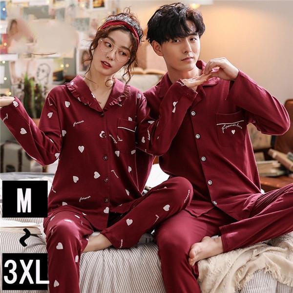 Amazon ペア パジャマ カップル 秋 冬 メンズ 上下 セット レディース ルームウェア 綿 おしゃれ 長袖 部屋着 おそろい 寝巻き かわいい 大きいサイズ 赤 紺 M L Ll 3l 4l パジャマ 通販
